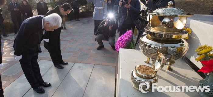 (서울=포커스뉴스) 김한길 무소속 의원이 4일 오전 서울 동작구 국립서울현충원 故 김대중 전 대통령 묘역을 찾아 참배를 하고 있다.