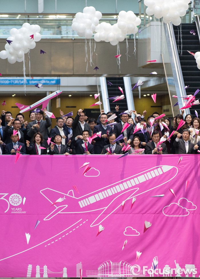 (서울=포커스뉴스) 4일 오전 서울 강남구 코엑스에서 열린 30주년 이색 시무식에 참석한 코엑스 임직원들이 종이비행기를 날리며 한 해의 힘찬 시작을 알리고 있다.
