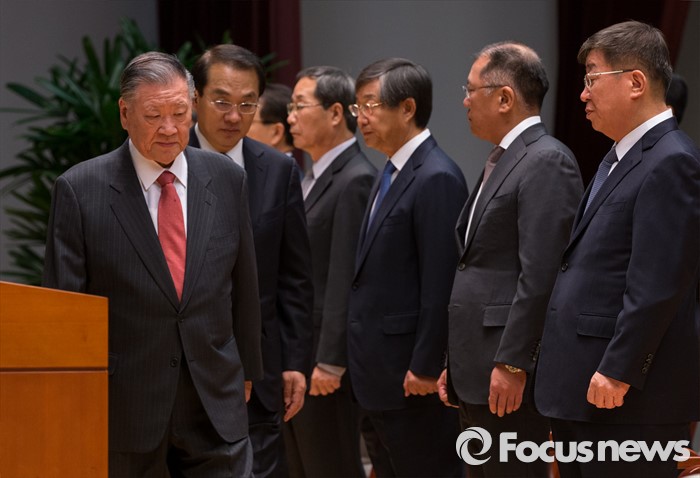 (서울=포커스뉴스) 4일 오전 서울 서초구 현대자동차 본사 대강당에서 열린 2016년도 시무식에 정몽구 현대차그룹 회장이 참석하고 있다.