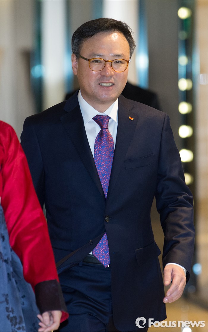 (서울=포커스뉴스) 장동현 SK텔레콤 사장이 4일 오전 서울 광진구 워커힐호텔에서 열린 SK그룹 신년회에 참석하고 있다.