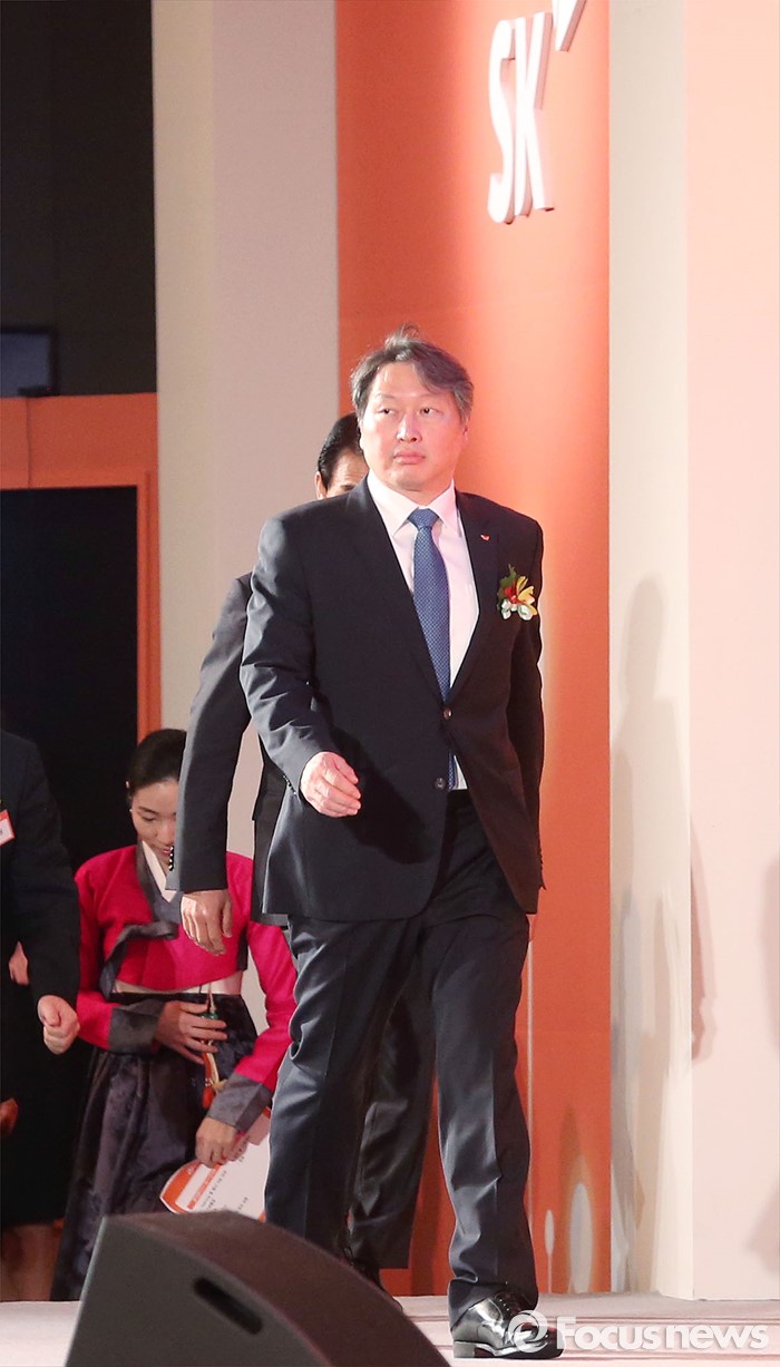 (서울=포커스뉴스) 최근 혼외로 아이를 둔 사실을 고백해 파문을 일으키고 있는 최태원 SK그룹 회장이 4일 오전 서울 광장동 워커힐호텔에서 열린 그룹 신년회에 참석하고 있다.