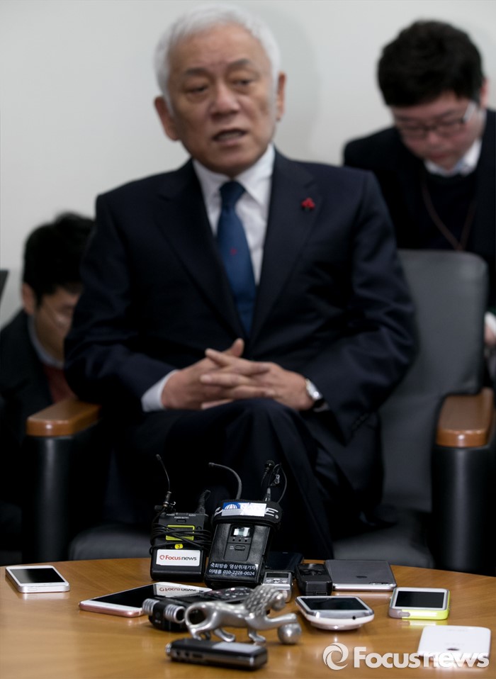 (서울=포커스뉴스) 더불어민주당을 탈당한 김한길 무소속 의원이 4일 오후 서울 여의도 국회 의원회관 의원실에서 향후 계획 등과 관련 기자간담회를 하고 있다.