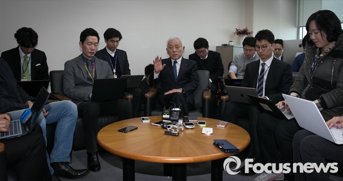 (서울=포커스뉴스) 더불어민주당을 탈당한 김한길 무소속 의원이 4일 오후 서울 여의도 국회 의원회관 의원실에서 향후 계획 등과 관련 기자간담회를 하고 있다.