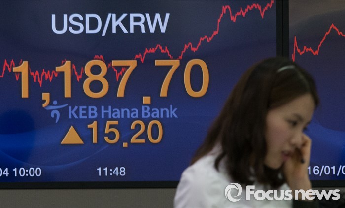 (서울=포커스뉴스) 새해 첫 거래일인 4일 원·달러 환율이 중국 증시 폭락 여파로 15.2원 급등한 1187.7원에 장을 마쳤다. 이날 서울 중구 을지로 KEB하나은행에서 딜러들이 업무를 보고 있다.