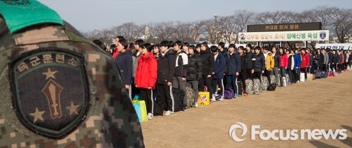 (논산=포커스뉴스) 4일 오후 충남 논산 육군훈련소 입영심사대에서 부사관 후보생들이 도열해 있다.