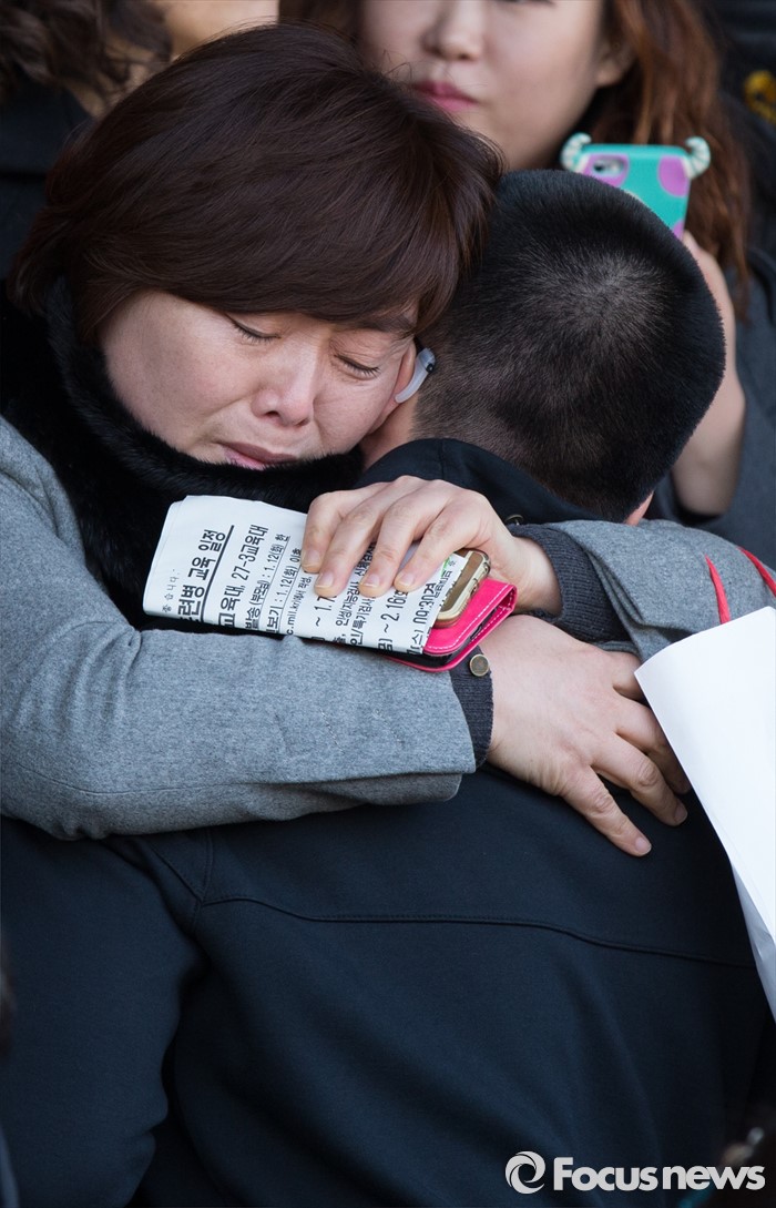 (논산=포커스뉴스) 4일 오후 충남 논산 육군훈련소 입영심사대에서 입영장병들이 부모와 포옹을 있다.