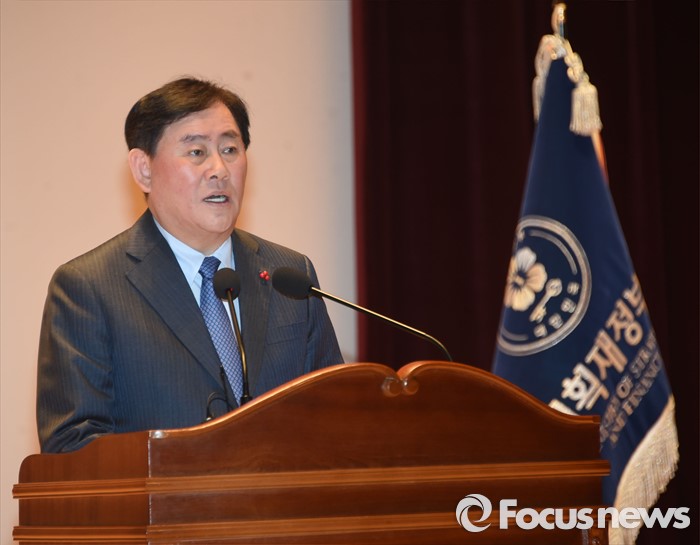 (세종=포커스뉴스) 최경환 경제부총리 겸 기획재정부장관이 4일 오전 세종시 정부세종청사 대강당에서 열린 기재부 시무식에 참석해 신년사를 하고 있다. <사진제공=기획재정부>