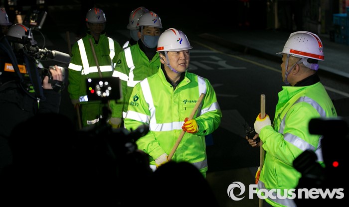 (서울=포커스뉴스) 신당 창당을 추진 중인 안철수 무소속 의원이 5일 오전 서울 영등포역 동부광장 인근에서 환경미화원들과 함께 새해맞이 청소를 하며 대화하고 있다.