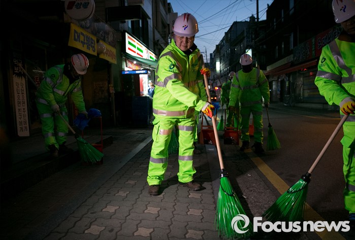 (서울=포커스뉴스) 신당 창당을 추진 중인 안철수 무소속 의원이 5일 오전 서울 영등포역 동부광장 인근에서 환경미화원들과 함께 새해맞이 청소를 하고 있다.