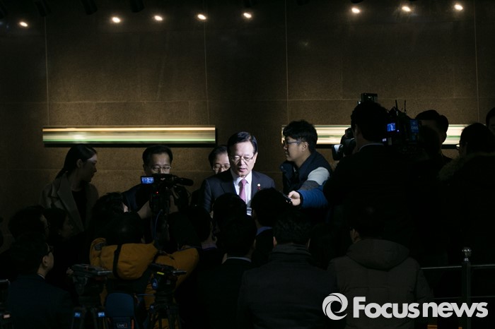 (서울=포커스뉴스) 정의화 국회의장이 5일 오전 서울 여의도 국회에서 출근길에 기자들과 만나 질의응답을 하고 있다.