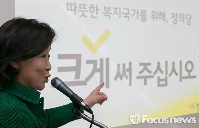 (서울=포커스뉴스) 5일 오전 서울 여의도 국회에서 열린 정의당 20대 총선 기조, 캐치프레이즈, CI, 전략 캠페인 공개 시연회에 참석한 심상정 상임대표가 설명을 하고 있다.