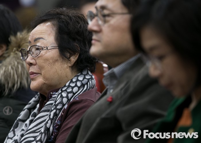 (서울=포커스뉴스) 5일 오후 서울 여의도 국회 의원회관에서 민주사회를 위한 변호사모임, 한국정신대문제대책협의회 등 주최로 열린 긴급진단, 2015년 한일 외교 장관 회담의 문제점 토론회에 참석한 위안부 피해자 이용수(왼쪽) 할머니가 패널들의 발언을 듣고 있다.