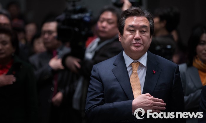 (서울=포커스뉴스) 김무성 새누리당 대표가 5일 오후 서울 중구 프레스센터에서 열린 ‘2016 시민사회 합동 신년회’에 참석, 행사에 앞서 국민의례를 하고 있다.