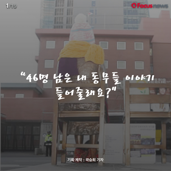 내 이름은 소녀상, 1000번 째 수요시위(2011.12.14) 때 일본대사관 앞으로 왔습니다. 이제 내 동무들은 46명만 남았고, 난 우리 정부에게 ‘적절히 해결될 존재’가 되버렸습니다.