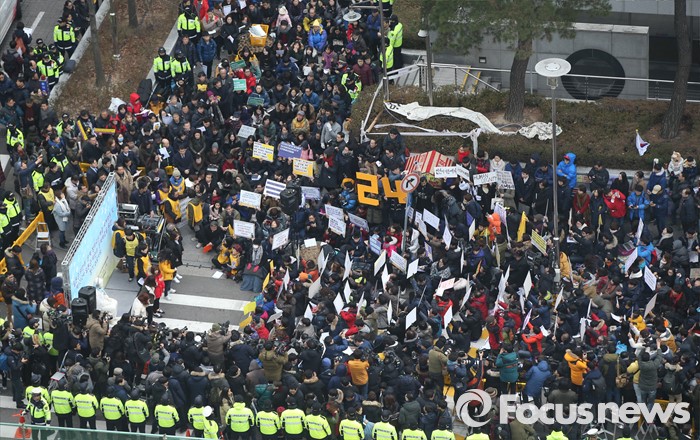 (서울=포커스뉴스) 24주년을 맞이한 일본군 위안부 문제해결을 위한 1212차 정기수요집회가 열린 6일 오후 서울 종로구 구 일본대사관 앞에서 참가자들이 집회에 참여하고 있다.