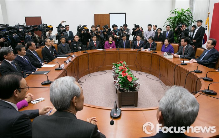 (서울=포커스뉴스) 6일 오후 서울 여의도 국회 새누리당 대표최고위원실에서 북한 핵실험 관련 긴급대책회의가 열리고 있다.