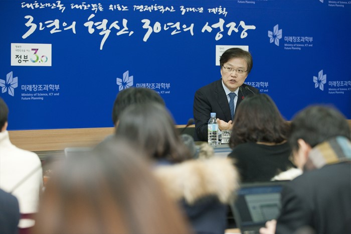 (서울=포커스뉴스) 최양희 미래창조과학부 장관이 6일 오전 경기도 과천시 정부과천청사 미래창조과학부 브리핑실에서 기자간담회를 열고 창조경제혁신센터 성과에 대해 설명하고 있다. <사진제공=미래창조과학부>