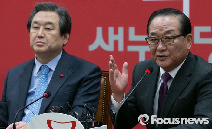 (서울=포커스뉴스) 서청원(오른쪽) 새누리당 최고위원이 6일 오후 서울 여의도 국회 대표최고위원실에서 열린 북한 핵실험 관련 긴급대책회의에 참석해 발언하고 있다.