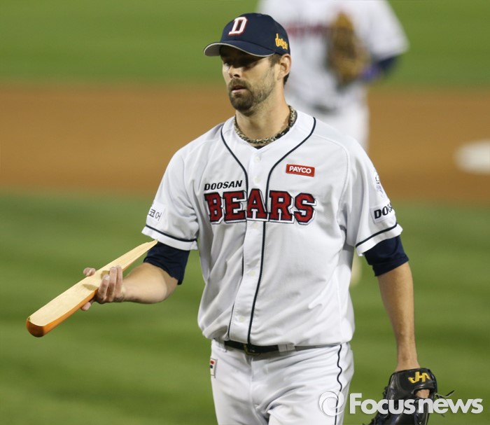결국 니퍼트는 두산에서 다시한번 뛰기로 결정했다. 두산으로서는 확실한 1선발을 확보하게 됐다. 니퍼트는 그야말로 검증된 투수이자 믿을 수 있는 투수다. 한국야구 통산 5시즌에서 120경기 58승32패 평균자책점 3.25를 기록하고 있다. 그 기간 외국인투수 최다이닝(768과 3분의 1이닝) 최다 퀄리티스타트(73회·선발 6이닝 3자책 이하) 등을 기록하며 두산 마운드 중심이 됐다.(서울=포커스뉴스) 22일 잠실구장에서 열린 프로야구 2015 포스트스즌 NC-두산 PO 4차전에서 1회 두산 투수 니퍼트가 NC 나성범의 부러진 배트를 집어주고 있다. 2015.10.22 우정식 기자