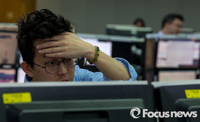 (서울=포커스뉴스) 코스피 지수가 전거래일 보다 5.10포인트(0.26%) 하락한 1,925.43에 거래를 마치며, 북한의 수소탄 실험에도 1920선을 지킨 6일 오후 서울 중구 KEB하나은행 본점 딜링룸에서 딜러들이 업무를 보고 있다. 이날 원달러 환율은 전거래일 보다 9.9원 오른 1197.9원에 마감하며, 지난해 9월 1200.9원 이후 4개월 만에 최고치를 기록 했다.