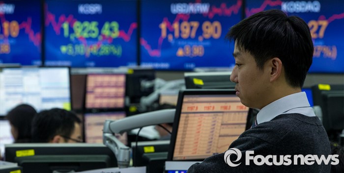(서울=포커스뉴스) 코스피 지수가 전거래일 보다 5.10포인트(0.26%) 하락한 1,925.43에 거래를 마치며, 북한의 수소탄 실험에도 1920선을 지킨 6일 오후 서울 중구 KEB하나은행 본점 딜링룸에서 딜러들이 업무를 보고 있다. 이날 원달러 환율은 전거래일 보다 9.9원 오른 1197.9원에 마감하며, 지난해 9월 1200.9원 이후 4개월 만에 최고치를 기록 했다.