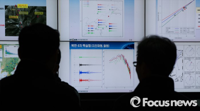 (대전=포커스뉴스) 북한이 수소탄 핵실험을 성공했다고 발표한 가운데 6일 오후 대전 유성구 한국지질자원연구원 지진연구센터에서 관계자들이 수집한 자료를 살피고 있다.