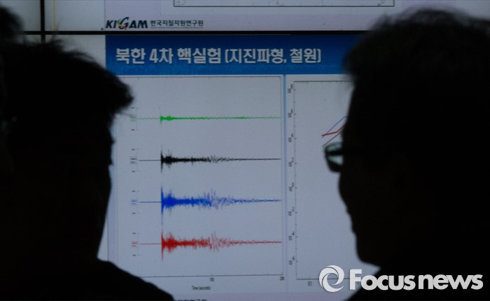 (대전=포커스뉴스) 북한이 수소탄 핵실험을 성공했다고 발표한 가운데 6일 오후 대전 유성구 한국지질자원연구원 지진연구센터에서 관계자들이 수집한 자료를 살피고 있다.