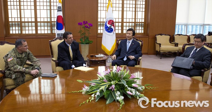 (서울=포커스뉴스) 북한이 첫 수소탄 실험에 성공했다고 발표한 6일 오후 윤병세(오른쪽 두번째) 외교부 장관이 서울 도렴동 외교부를 방문한 마크 리퍼트(왼쪽 두번째) 주한 미국대사, 커티스 스캐퍼로티 주한미군사령관과 북한의 제4차 핵실험에 대한 대응방안을 논의하고 있다.