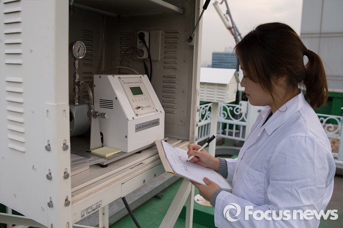 (서울=포커스뉴스) 북한이 수소탄 실험에 성공했다고 발표한 6일 오후 서울 성동구 한국원자력안전기술 서울지방방사능측정소에서 연구원이 방사능 오염 여부를 측정해 기록하고 있다.