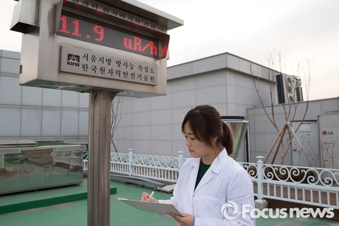 (서울=포커스뉴스) 북한이 수소탄 실험에 성공했다고 발표한 6일 오후 서울 성동구 한국원자력안전기술 서울지방방사능측정소에서 연구원이 방사능 오염 여부를 측정해 기록하고 있다.
