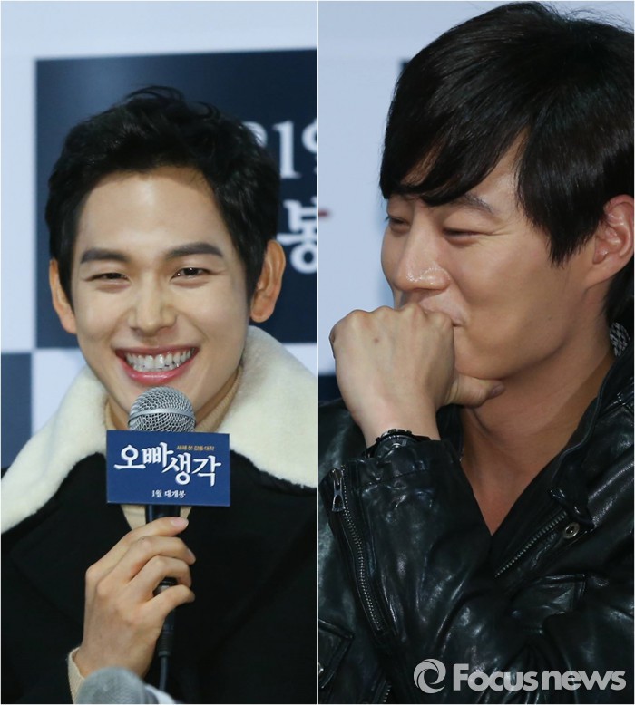 영화 '오빠생각'은 한국전쟁 당시 실존한 해군 어린이합창단을 모티브로 만들어졌다. 한상렬 소위(임시완 분)가 자원봉사자 박주미(고아성 분), 어린이들과 함께 만든 합창단의 이야기를 동요 속에 담았다. 1월 개봉한다.<서울=포커스뉴스> 배우 임시완(왼쪽)과 이희준이 6일 서울 광진구 롯데시네마 건대입구에서 열린 영화 '오빠생각' 언론시사회에서 질문에 답하고 있다. 김유근
