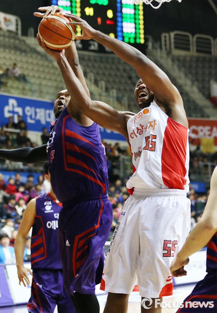 (고양=포커스뉴스) 6일 고양체육관에서 열린 2015-2016 프로농구 오리온-SK 경기에서 SK 사이먼의 골밑슛을 오리온 존슨이 블로킹하고 있다.