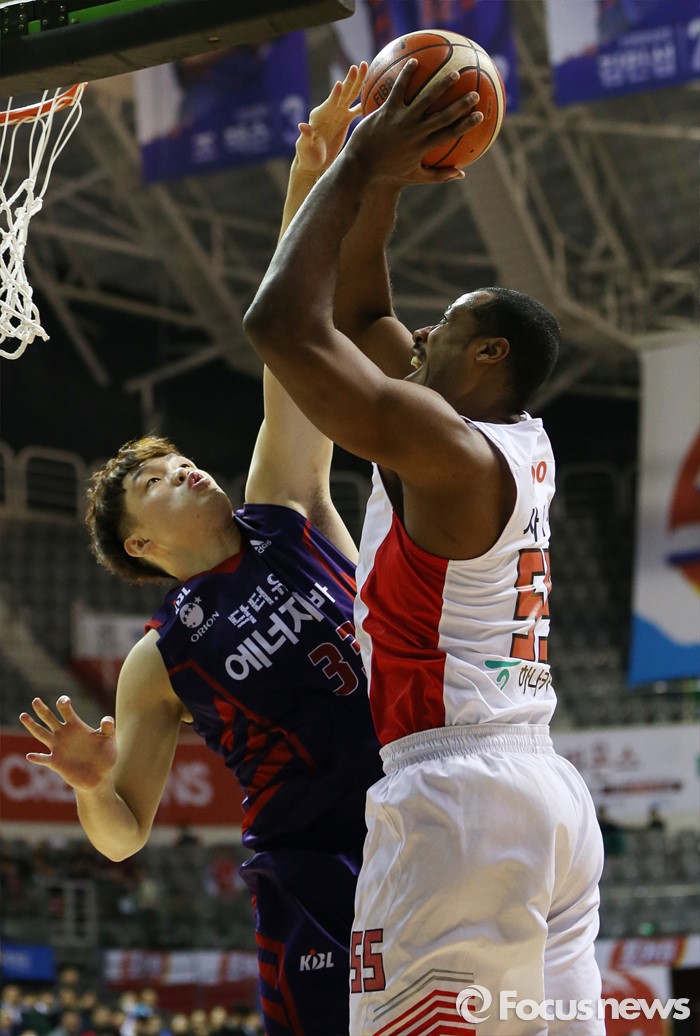 (고양=포커스뉴스) 6일 고양체육관에서 열린 2015-2016 프로농구 오리온-SK 경기에서 SK 사이먼의 골밑슛을 오리온 이승현이 저지하고 있다.
