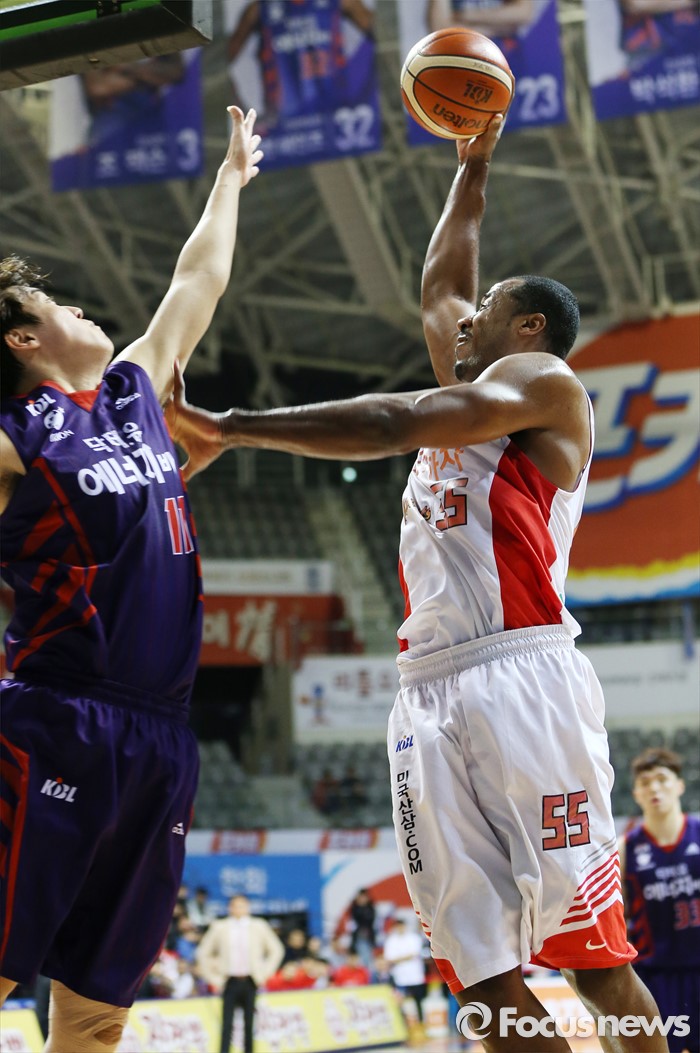 (고양=포커스뉴스) 6일 고양체육관에서 열린 2015-2016 프로농구 오리온-SK 경기에서 SK 사이먼이 오리온 허일영의 마크를 제치며 원핸드 덩크슛을 시도하고 있다.