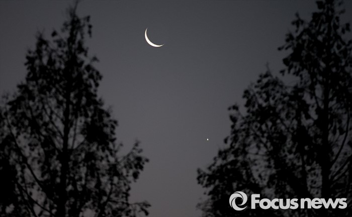 (서울=포커스뉴스) 7일 오전 서울 여의도 국회에서 바라본 하늘에 그믐달과 함께 샛별이 빛나고 있다.