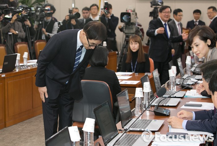 (서울=포커스뉴스) 이준식 사회부총리 겸 교육부 장관 후보자가 7일 오전 서울 여의도 국회에서 열린 인사청문회에 참석해 야당 의원들과 인사하고 있다.