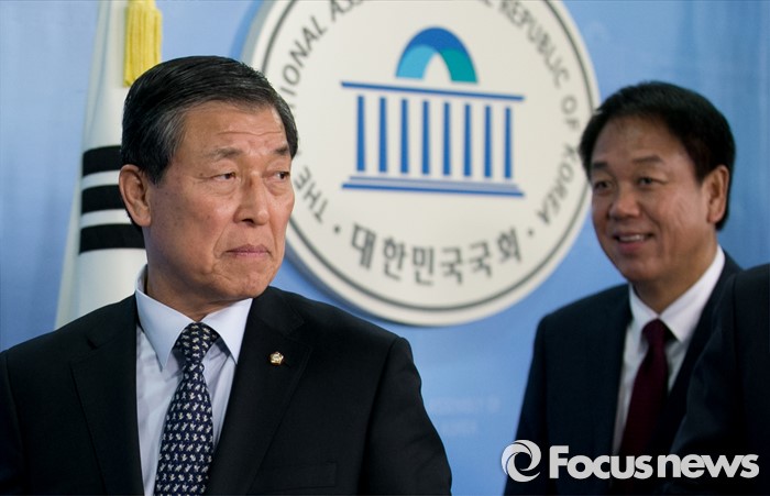 (서울=포커스뉴스) 황진하(왼쪽) 새누리당 공천제도특별위원장과 박종희 제2사무부총장이 7일 오전 서울 여의도 국회 정론관에서 특위 회의 결과에 대한 브리핑을 마친 뒤 퇴장하고 있다.
