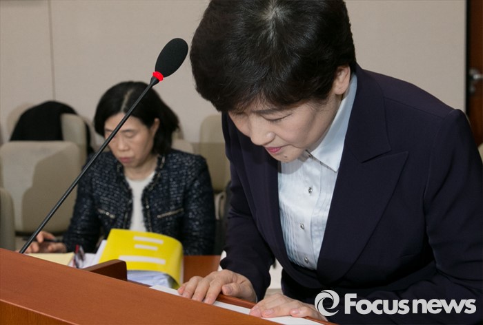 (서울=포커스뉴스) 강은희 여성가족부 장관 후보자가 7일 오전 서울 여의도 국회에서 열린 인사청문회에 참석해 모두발언에 앞서 인사하고 있다.