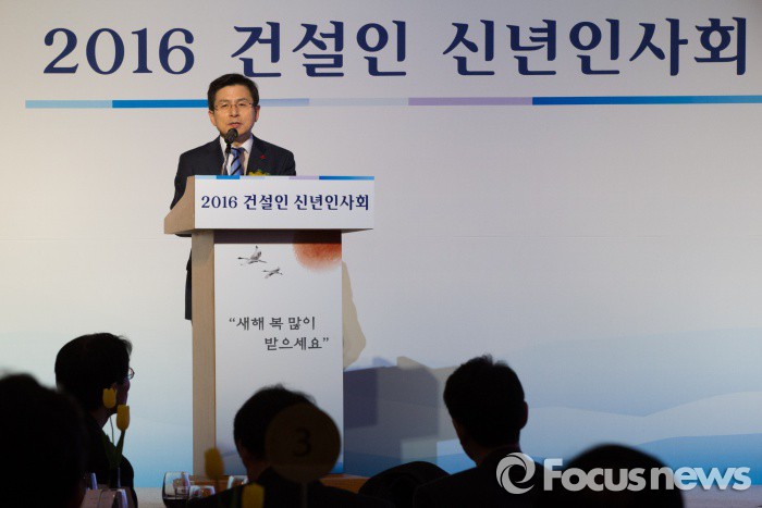 (서울=포커스뉴스) 황교안 국무총리가 7일 오후 서울 중구 롯데호텔에서 열린 2016 건설인 신년인사회에 참석해 신년사를 하고 있다.
