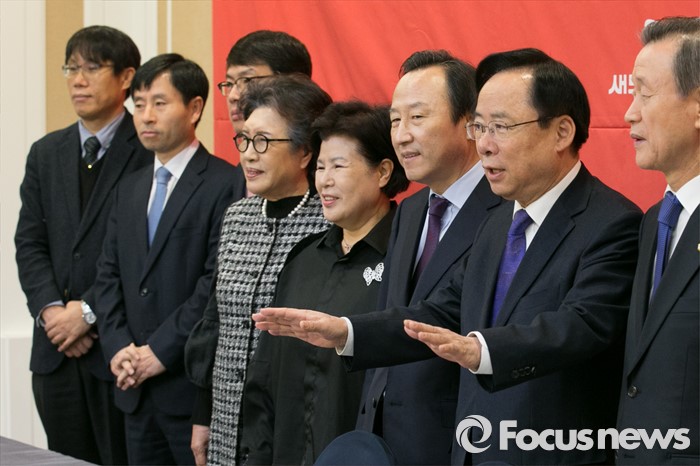 (서울=포커스뉴스) 이주영(오른쪽 두번째) 새누리당 저출산대책특위 위원장이 8일 오전 서울 여의도 국회 귀빈식당에서 열린 제3차 저출산대책특위회의에 참석해 기념사진 촬영 중 발언을 하고 있다.