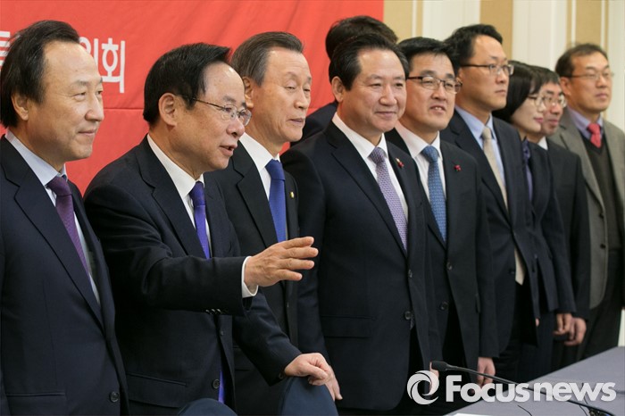(서울=포커스뉴스) 이주영(왼쪽 두번째) 새누리당 저출산대책특위 위원장이 8일 오전 서울 여의도 국회 귀빈식당에서 열린 제3차 저출산대책특위회의에 참석해 기념사진 촬영 중 발언을 하고 있다.