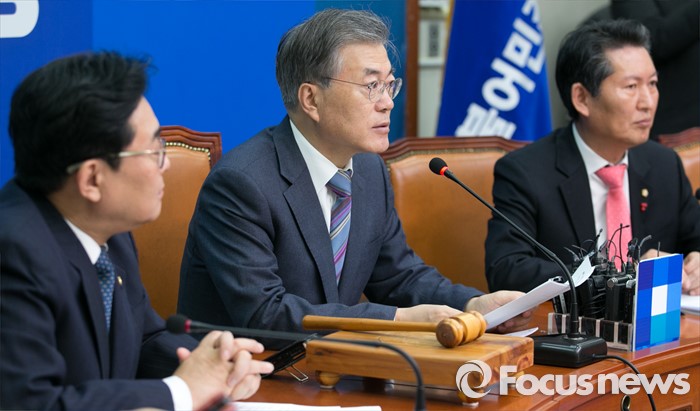 (서울=포커스뉴스) 문재인 더불어민주당 대표가 8일 오전 서울 여의도 국회에서 열린 최고위원회의에 참석해 모두발언을 하고 있다.