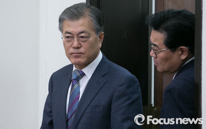 | △ 회의 참석하는 문재인-전병헌 |