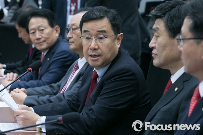 (서울=포커스뉴스) 김정훈(오른쪽 세번째) 새누리당 정책위의장이 8일 오전 서울 여의도 국회 새누리당 정책위원회에서 열린 북핵 관련 전문가 간담회에 참석해 모두발언하고 있다.