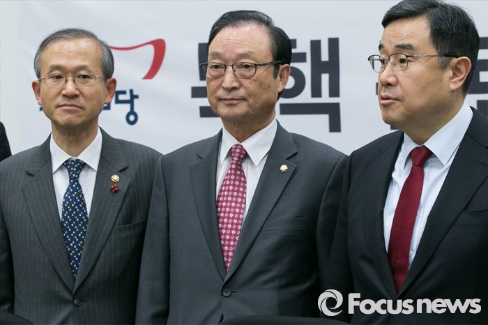 (서울=포커스뉴스) 김정훈(오른쪽부터) 새누리당 정책위의장과 김성찬 의원, 임성남 외교부 1차관이 8일 오전 서울 여의도 국회 새누리당 정책위원회에서 열린 북핵 관련 전문가 간담회에 참석해 기념사진을 찍고 있다.