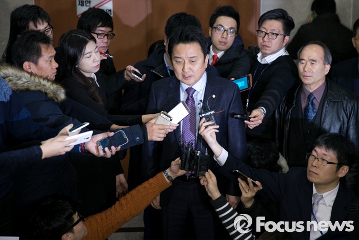 (서울=포커스뉴스) 김영환 더불어민주당 의원이 8일 오전 서울 여의도 국회 정론관에서 탈당 기자회견을 마친 뒤 취재진 질문에 답하고 있다.