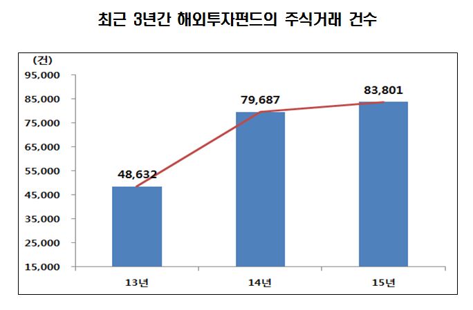 (서울=포커스뉴스) 지난해 해외투자펀드 주식거래가 소폭 증가한 것으로 나타났다. 특히 후강퉁 개통으로 중국시장에 대한 거래비중이 큰 폭으로 증가했다.