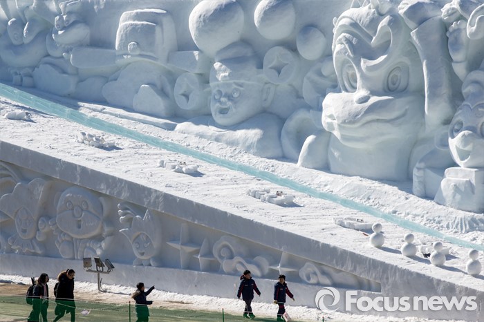 (화천=포커스뉴스) 산천어축제를 하루 앞둔 8일 오후 강원도 화천군 산천어축제 행사장인 화천천에 얼음조각 작품이 전시되고 있다. 산천어축제는 오는 9일부터 31일까지 강원도 화천군 화천천 및 3개읍면 일원에서 진행될 예정이다.