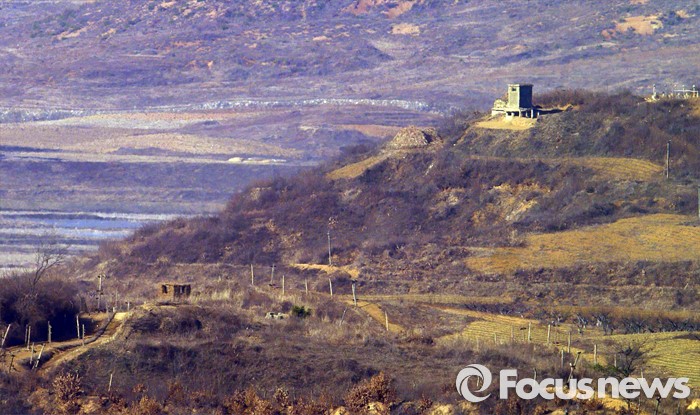 (파주=포커스뉴스) 군 당국의 대북확성기 방송 재개를 앞둔 8일 오전 경기도 파주 오두산 통일전망대에서 바라본 북한 개풍군 마을 인근에 군 초소가 보이고 있다.