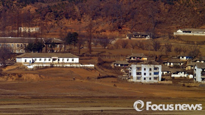 (파주=포커스뉴스) 군 당국의 대북확성기 방송 재개를 앞둔 8일 오전 경기도 파주 오두산 통일전망대에서 바라본 북한 개풍군 마을 주민들이 평온한 모습을 보이고 있다.